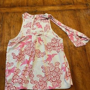 Pink Flirty Fun Top with Birds and Leaves, Cute Neck Tie -- Maeve Anthropologie