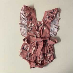 Pink Floral Baby Girls’ Ruffled One-Piece 6-9 Months EUC