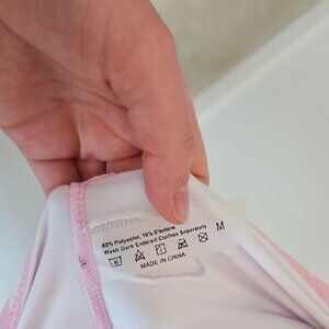 This pink floral bandeau bikini top is perfect for a stylish and comfortable fit