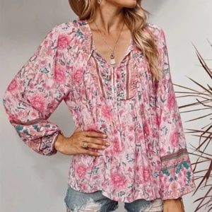 Pink Floral Bohemian Peasant Blouse