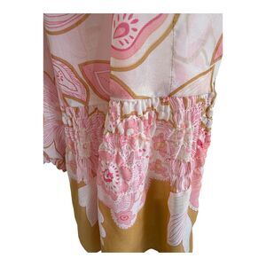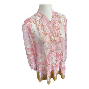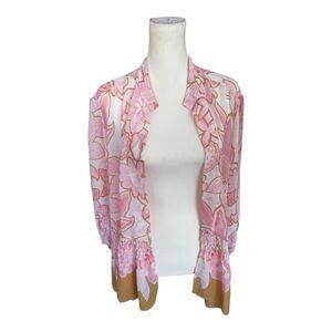 Pink Floral Boho Spring Cottagecore Flowy Smocked Fairy Cardigan Top L