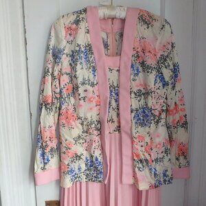 Pink Floral Chenille Wool Pleated Sunday Dress Set