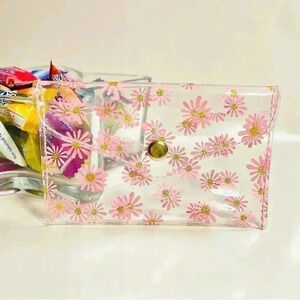 Pink Floral Clear Card Case Wallet