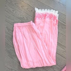 Pink Floral Indian Suit with Lace & Sheer Sleeves- XS New