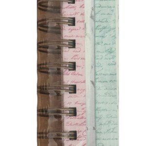New in sealed packaging, this blank journal features a spiral binding with a pink floral hardcover. The cover has an outside border of pink with an inner border/frame of aqua blue, with an image of a pink rose in the frame. This has a hardcover and features 120 lined pages.