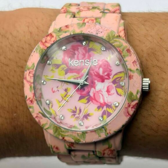 Pink Floral Kensie Watch. Fully functional with brand new batteries. Fits 7 in wrist.