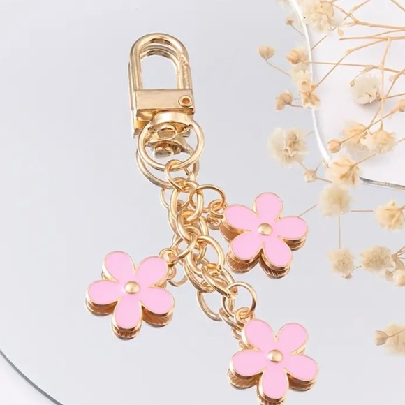 Add a touch of elegance to your accessories with this charming pink floral keychain. Perfect for adding a pop of color to your bag or keys.