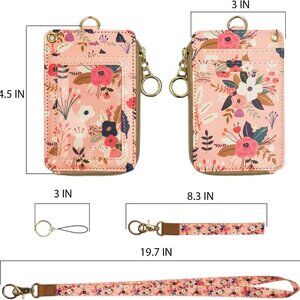 Features: Compact ID card holder combo with five badge slots on the front and back, plus a side zipper pocket for cash, coins, or bills. Made from lightweight, skin-friendly polyester with a snap closure. Features a versatile lanyard that can be worn around the neck or on the wrist, including a cell phone lanyard and metal rings to hang keys, cards, or decorative accessories. Designed with a cute floral print, extended lanyard loop, and sturdy hardware for daily use.