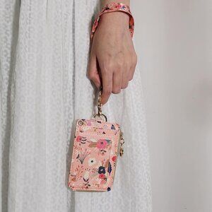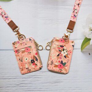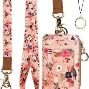Pink Floral Lanyard Wallet with Badge Holder Compact ID Card Holder