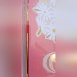 Spiral-bound notebook with a pink floral cover. Features a bouquet design. Ink pen included.