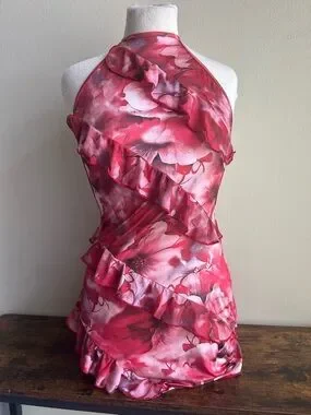 Pink Floral Ruffle Halter Tank