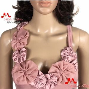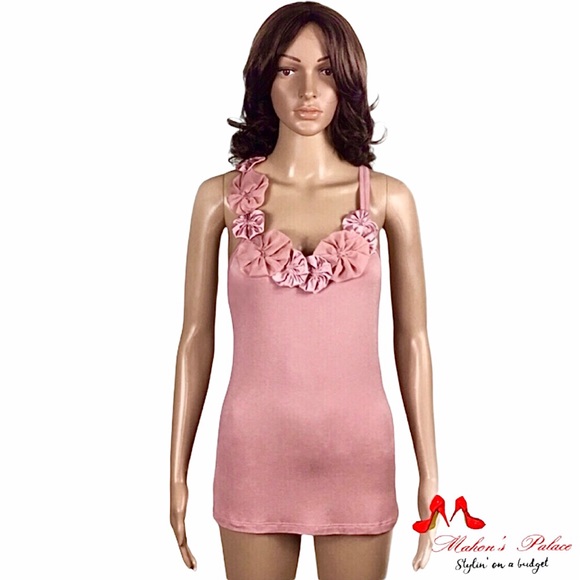Very sexy, flattering, & attention captivating brandless pink racerback tank top with gorgeous flower patchwork on neckline & upper back.