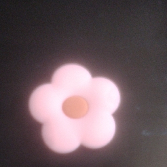 Cute pink flower shaped accessory with a brown center. Perfect for adding a touch of charm.