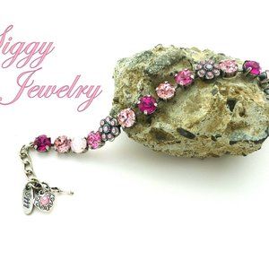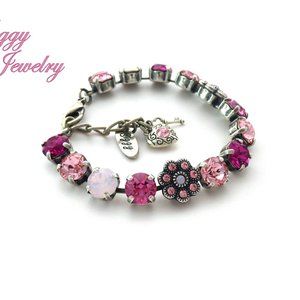 Pink Flower Tennis Bracelet Made with Genuine Swarovski Crystals