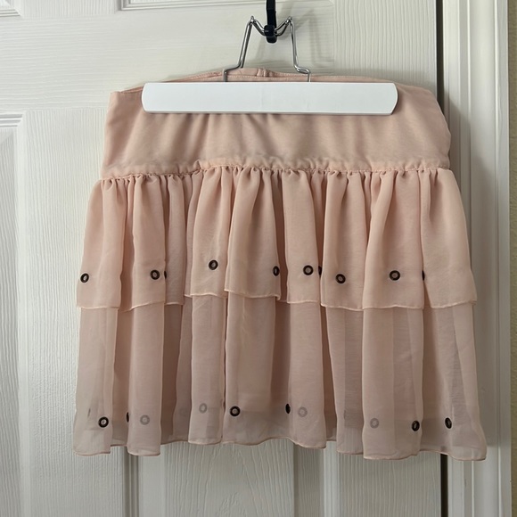 H&M Pink Flowy Double Ruffle Skirt with grommet detailing, size 4. Back zip closure.