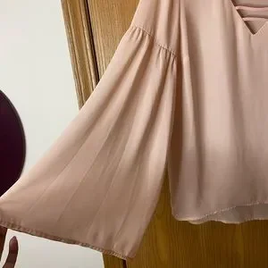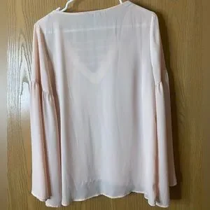 This shirt has super sweet bell sleeves! The material is a little see through as you can see from the picture but it is perfect for spring!