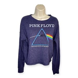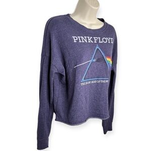 Pink Floyd Blue Long Sleeve Cropped ‘The Dark Side Of The Moon’ Band Sweatshirt Women’s Size Small
