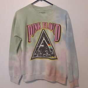 This Pink Floyd Dark Side Of The Moon sweatshirt is a must-have for any fan. With a stylish tie-dye design, this crewneck sweatshirt is made from a blend of polyester and cotton, ensuring both comfort and durability. The graphic print on the front features the iconic prism from the album cover, making it a great addition to any casual outfit. Available in size small, this sweatshirt is perfect for men who want to show off their love for Pink Floyd in a subtle yet stylish way.
