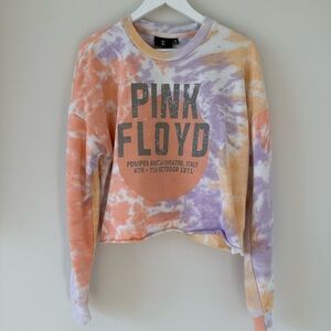 Pink Floyd Graphic Sweatshirt Pink Orange Tie Dye Cropped Crew Neck Pullover