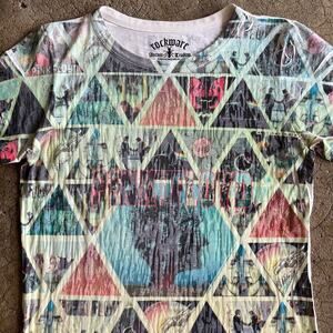 Pink Floyd Graphic T-Shirt Vintage y2k 2000s 2009 Womens Top Size M All Over graphic aop 2009 Pink Floyd spellout center chest, short sleeve thin tee, rocker