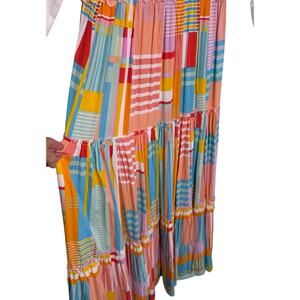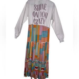 Pink Floyd Graphic Handmade Upcycle Long Sleeve Colorful Patchwork Maxi Dress