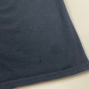 A few small stains, a grease spot, and small hole on front of shirt as shown in photos.