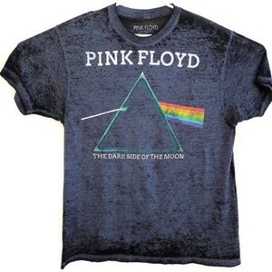 Official Pink Floyd Tee T Shirt Burnout Graphic Dark Side of the Moon. Super Soft Cotton Blend. Color is like the night. Dark with Teal and rainbow. Looks like velvet from a distance. Machine Wash. Unisex Fit. Marked size L.