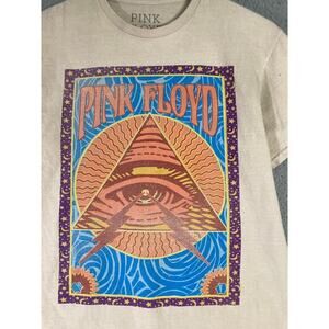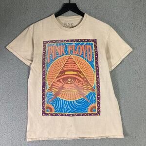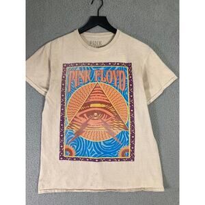 Pink Floyd Unisex Beige Graphic Tee Pyramid Eye Design Size S