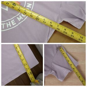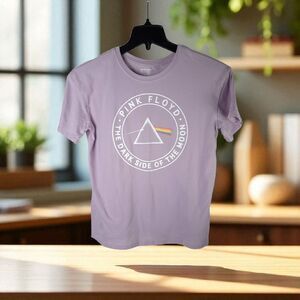 The Lilac Pink Floyd Women's XXL Crop Top is a light purple short sleeve t-shirt featuring a solid pattern with the iconic band logo. Made from a blend of polyester and cotton, this pullover t-shirt is machine washable for easy care. Designed for casual occasions, this regular fit cropped top shirt is perfect for travel or parties, showcasing a crew neck and casual sleeve type. The rock music theme makes it a stylish choice for the summer and spring seasons, making it a must-have for Pink Floyd fans looking to add a trendy piece to their wardrobe. Please see all pictures for measurements it is a shorter cropped form fitting style.