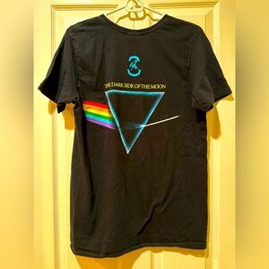 Black tee with Pink Floyd dark side of the Moon logo. Officially licensed product. Soft cotton material.
