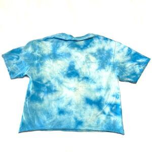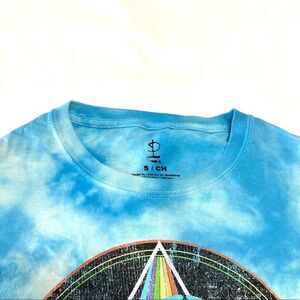 Pink Floyd Band Tee Blue Tie Dye Cropped Raw Hem Crew Neck Cotton Size Small