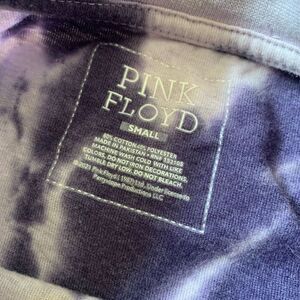 Pink Floyd purple tie dye short sleeve, crewneck graphic band T-shirt. Featuring a front band graphic.