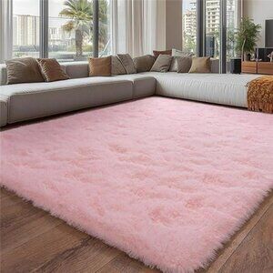 Pink Fluffy Area Rug 5x7 Soft Shaggy Carpet for Living Room Bedroom Kids Room