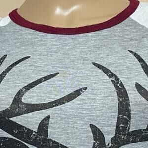 Pink Foot Deer Graphic Tee Small- Gray Maroon Black- Long Sleeve Cozy Fashion