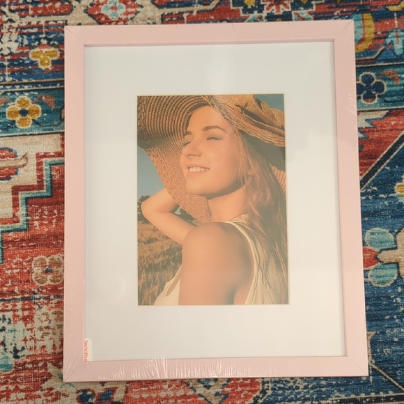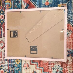 Baby pink frame. 10.75"x8.75", holds 5x7" photo inside mat. Would look lovely in a nursery. New in plastic.