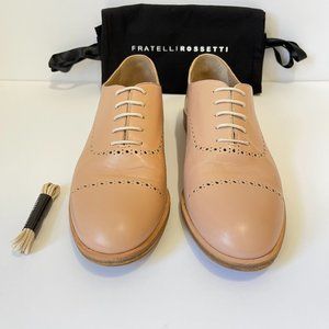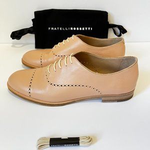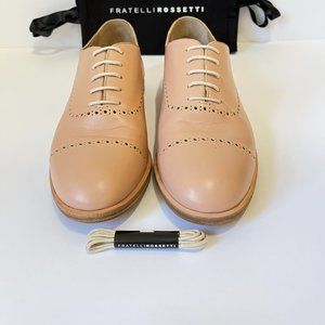 Pink leather Fratelli Rosetti shoes with tan laces.