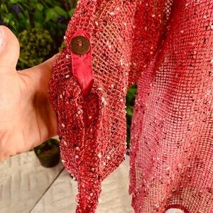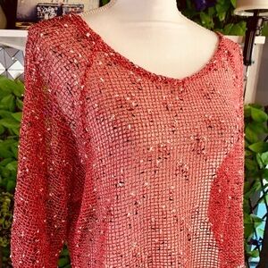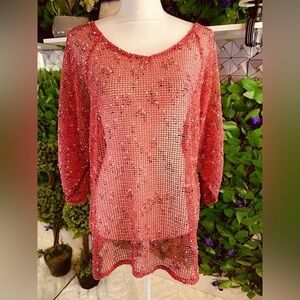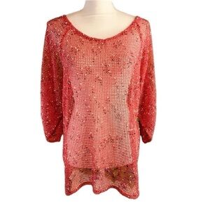 Pink Frazzle Net See Through 3/4 Sleeve Rave Party Shirt Oversized Small