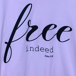 Pink Free Indeed V-Neck Christian Graphic T-Shirt