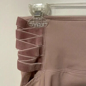 Free People FP Movement Leggings, W’s M. Excellent pre worn condition. Pretty dusty rose color with crushed velvet detail at waistband and functional side pockets. All items come from a dog friendly home and ship next biz day.