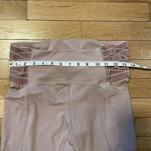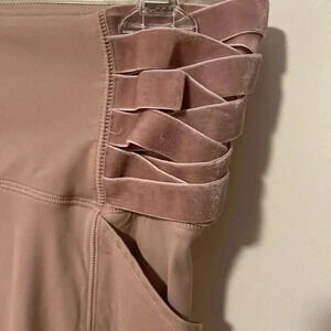 Free People FP Movement Leggings, W’s M. Excellent pre worn condition. Pretty dusty rose color with crushed velvet detail at waistband and functional side pockets. All items come from a dog friendly home and ship next biz day.