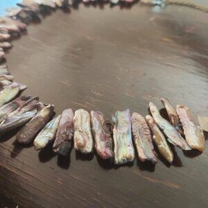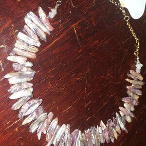 This stunning necklace features beautiful pink fresh water pearls complemented by a delicate gold chain. Perfect for adding a touch of elegance to any outfit.