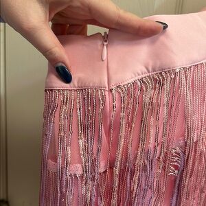 Add flair to your wardrobe with this stylish pink fringe skirt. Perfect for a night out or a special occasion. New never worn!! Full functioning zipper on side. NWOT
