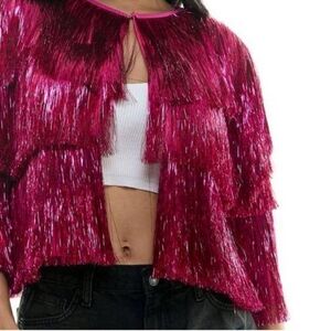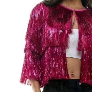 Pink Fringe Three Tiered Tinsel Jacket NWT