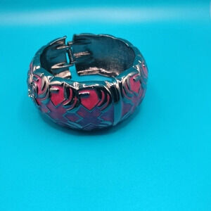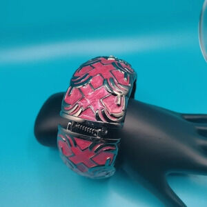 Unbranded Beautiful Piece is Hot Pink Fuchsia Metal Filigree Floral Rhinestones Accents Hinge Slide On Bracelet.
