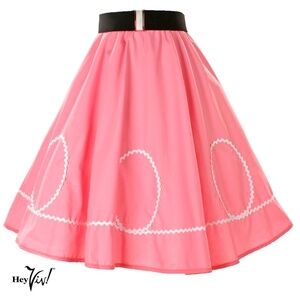 Pink Full Circle Skirt with White Ric Rac Trim 50s Style Swing Sz S/M - Hey Viv