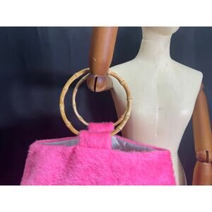 Pink Fury Purse, Created with Vintage Fabric, Ring Handles, One of A Kind