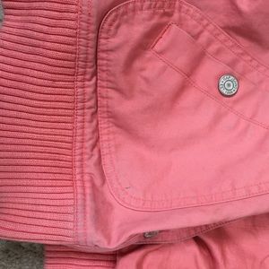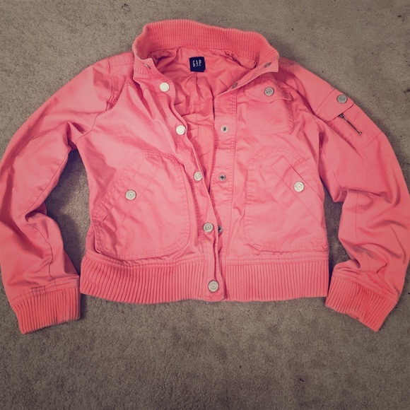Salmon pink gap jacket. Has a little wear to it as pictures (NO obvious stains), no real damage.