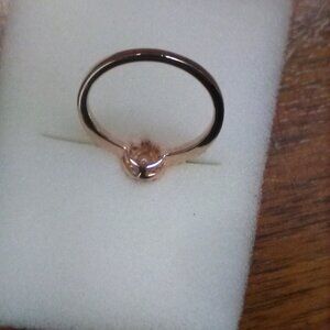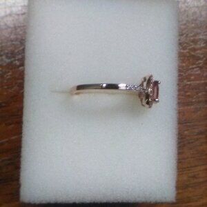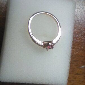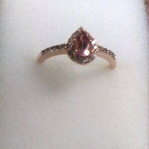 Small Pear-Shaped Pink Garnet prong set in Rose Gold over Sterling Silver Ring with Zircon Accents. Stamped 925
