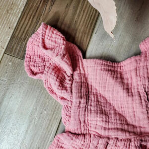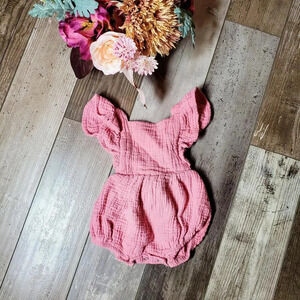 Pink Gauze Baby Girl Flutter Sleeve Bodysuit Romper Size 6M