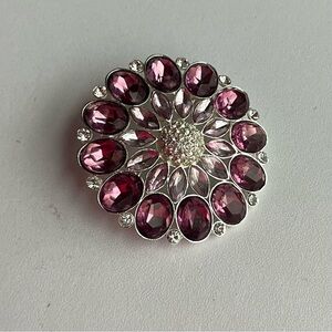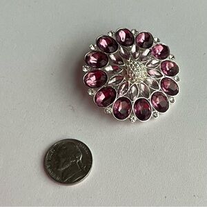 Lavender rhinestones round brooch/pendant Silver tone floral pin